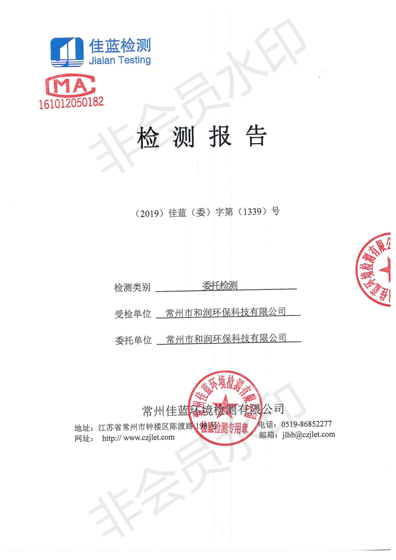 附件:委1339常州市和潤(rùn)環(huán)??萍加邢薰荆?019)佳藍(lán)(委)字第(1339)號(hào)